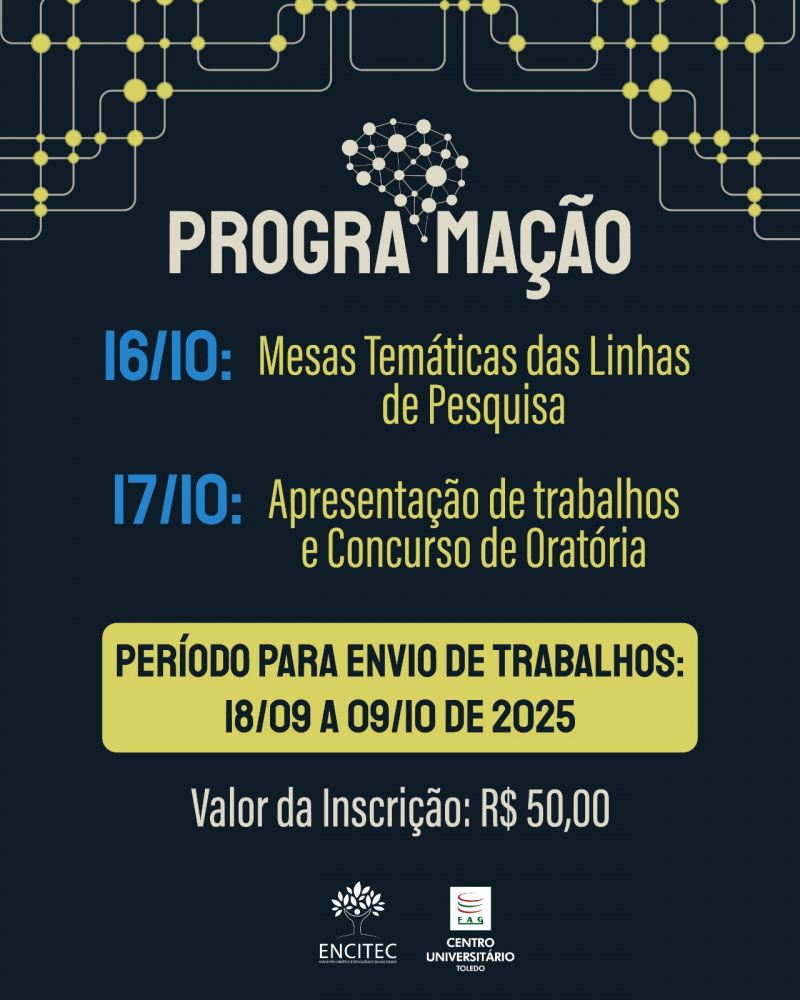 ENCITEC 2025 é aberto ao público externo; inscrições de trabalhos serão aceitas até 9/10.